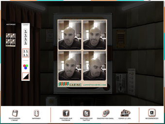 Photo Cabine tire 4 photos individuelles et originales, comme avant. Le résultat descend sous l'image de webcam et se présente sous deux formes différentes: en ligne ou en carré. Il est même possible de passer ses photos en noir et blanc.